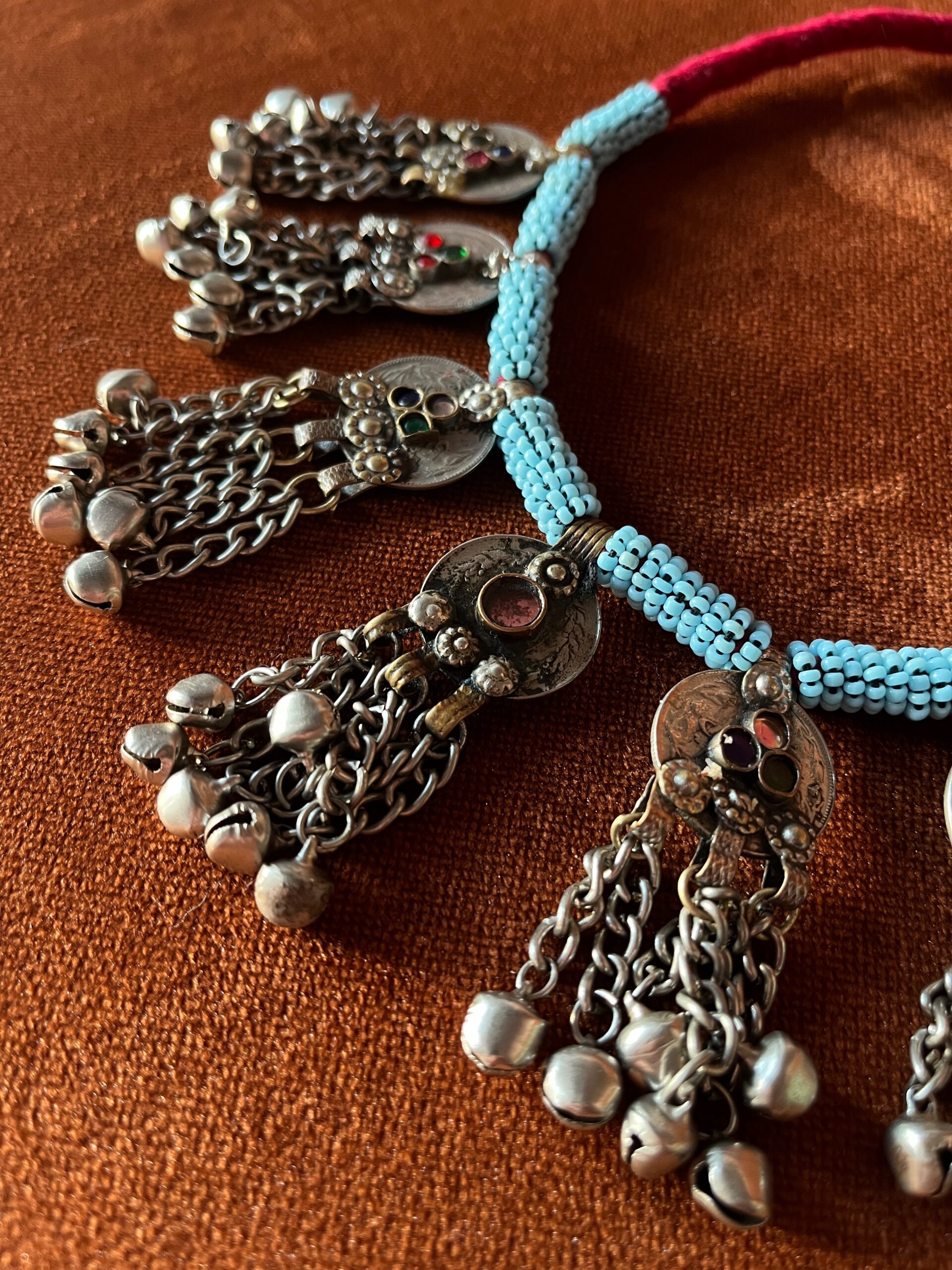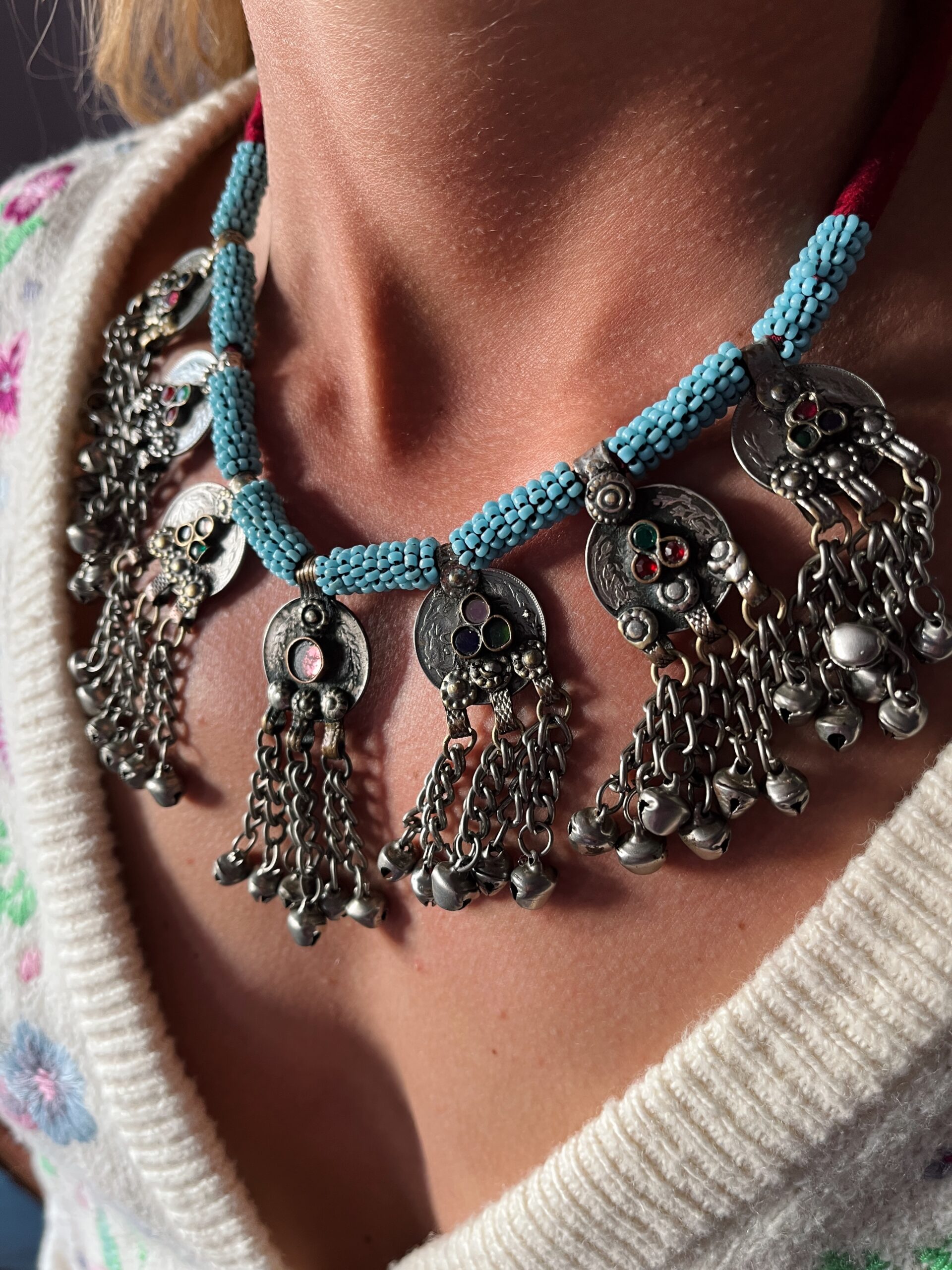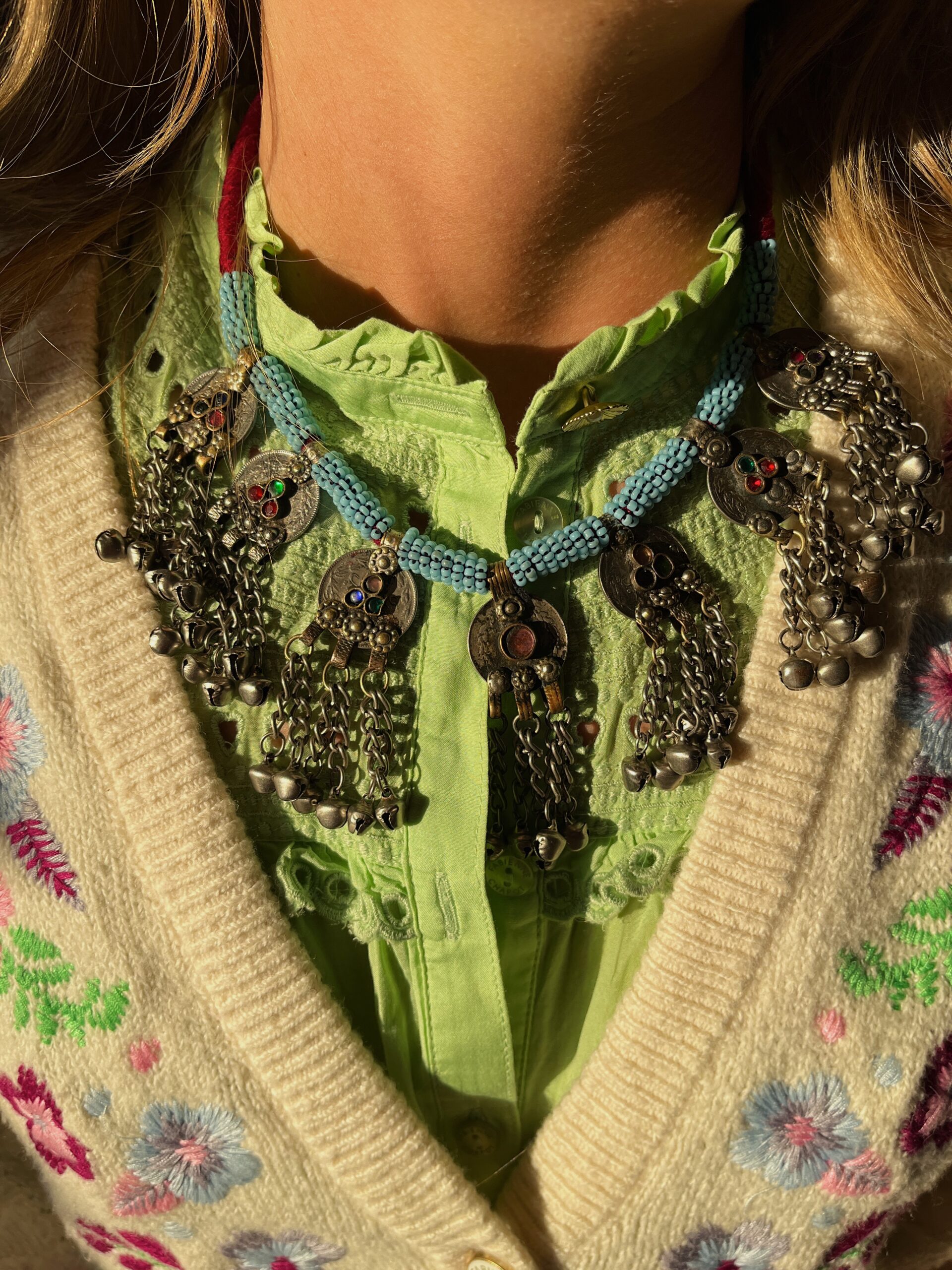 Handgemaakte ketting gemaakt van vintage materialen. Iedere ketting is uniek en is elk een beetje verschillend wat de ketting zo leuk maakt!