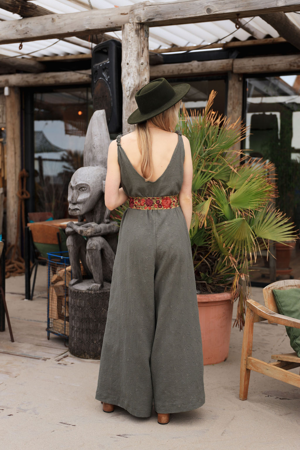 Deze groene jumpsuit is gemaakt van 100% geborduurd katoen. Dit model is 173 cm lang deze jumpsuit is goed voor de maten 36/38/40.