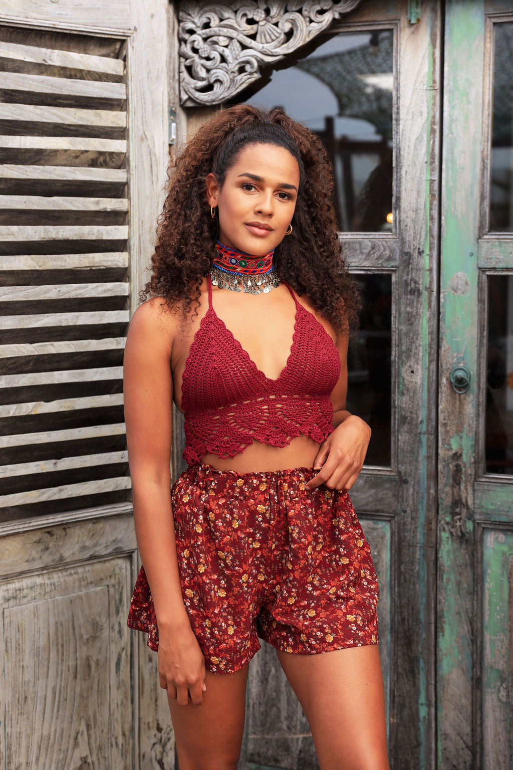 Dit model is 173 cm lang en draagt maat 36/38.